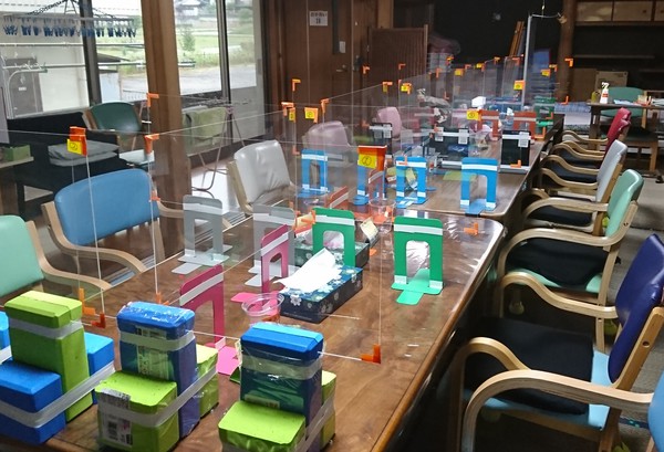 ⑤飛沫感染予防の為のアクリルパーテーションの設置。
